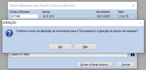 Ao confirmar essa opção, o pedido de alteração de vencimento é enviado para a Tecnospeed (PlugBoleto) para que seja alterado no sistema deles, e o arquivo gerado deve ser enviado ao seu banco, através do seu aplicativo de banco para que ele possa fazer a alteração.