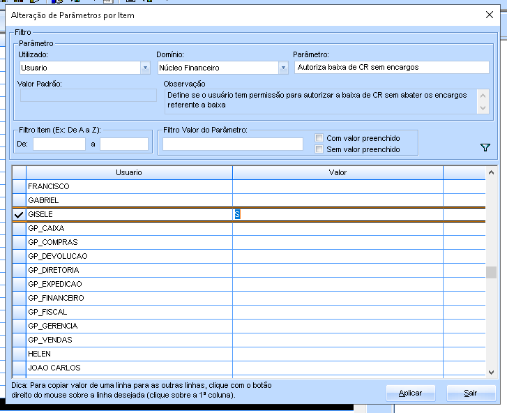 Alteração Parâmetro