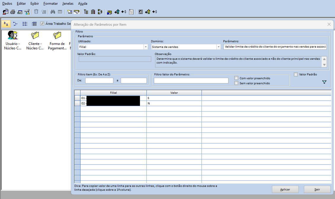 Parâmetro: " Validar limite de crédito do cliente do orçamento nas vendas para associado"