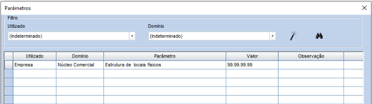 Para criar o endereçamento do seu local físico, o primeiro passo é definir a estrutura do seu local físico, com níveis e tamanhos dos níveis. Para isso deverá ser definido o parâmetro "Estrutura de locais físicos". Informar neste parâmetro o número de níveis separados por "." (ponto) e o número de dígitos de acordo com a quantidade de níveis possíveis, informando o número "9" para cada dígito.