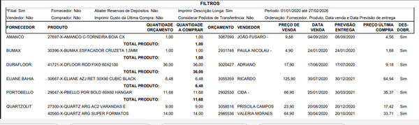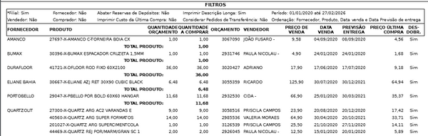 O relatório gerado no formato planilha permite:
