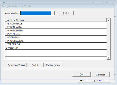 No botão "Seleção de Área de Vendas" você define para qual área de vendas esse relacionamento irá impactar e estará ativo para vendas, ECF e Checkout.