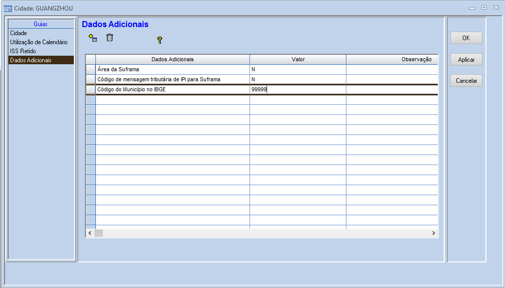 No dado adicional Código do Município do IBGE colocar 99999.