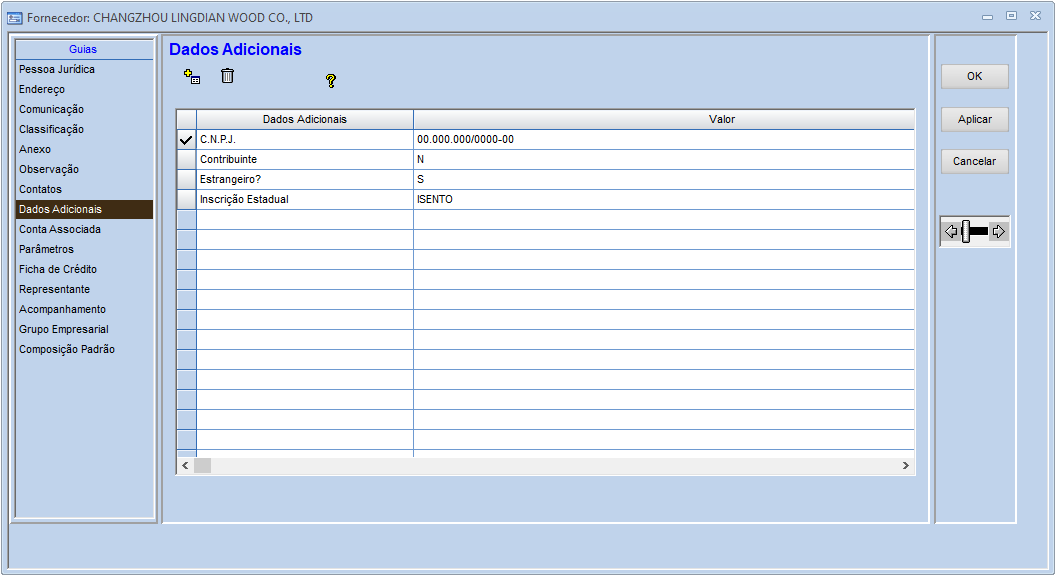 E na aba Dados Adicionais, informar o CNPJ como 00.000.000/0000-00 e o dado adicional Estrangeiro? igual a S